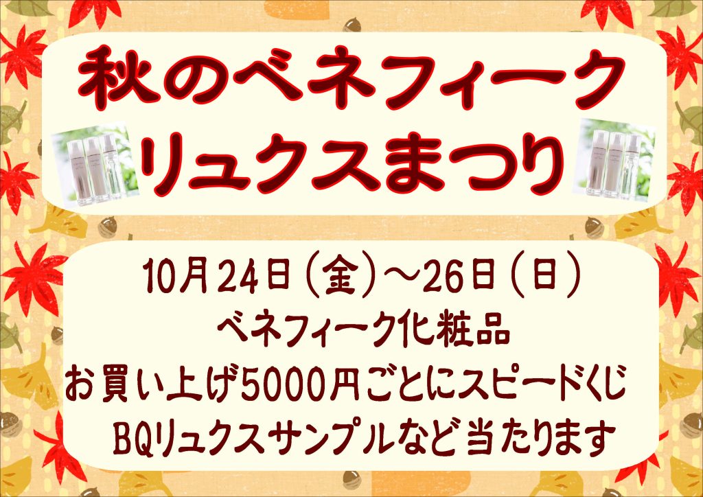 秋のベネフィークリュクスまつり 10月24日(金)~26日(日)まで