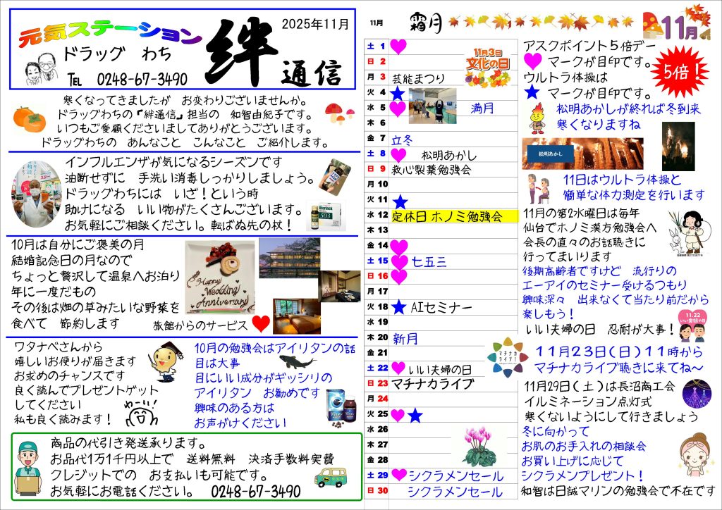 アスクの11月の予定です 変更の場合はそのつど店内掲示板でご案内たします