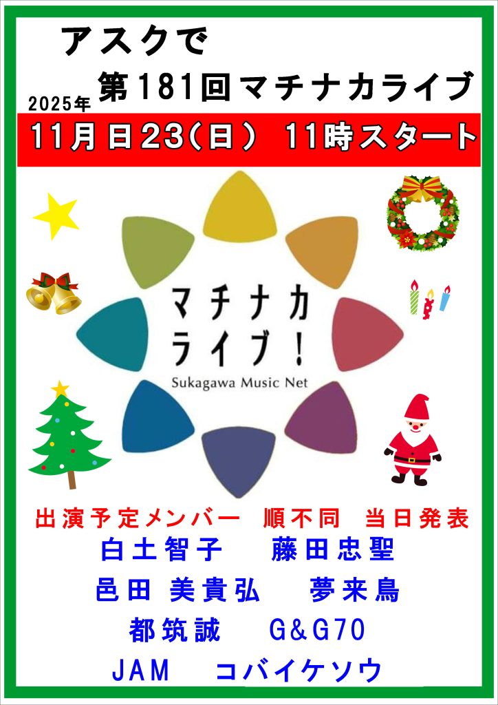 アスクでマチナカライブ 11月23日(日)11時スタート 音楽好きな方 集まれ~