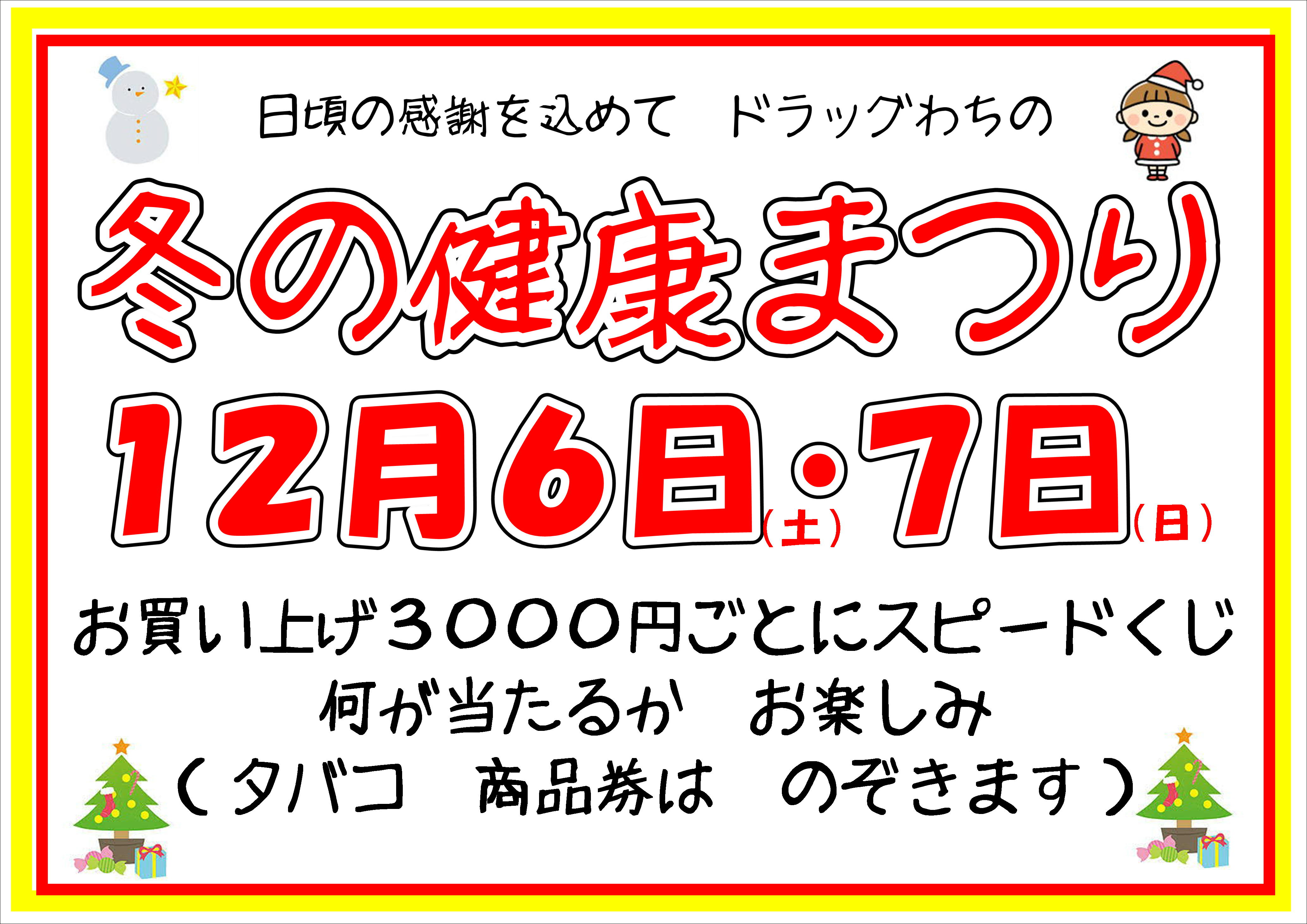 ドラッグわちの冬の健康まつり 12月6日(土)7日(日) 開催です ご利用お待ちしております