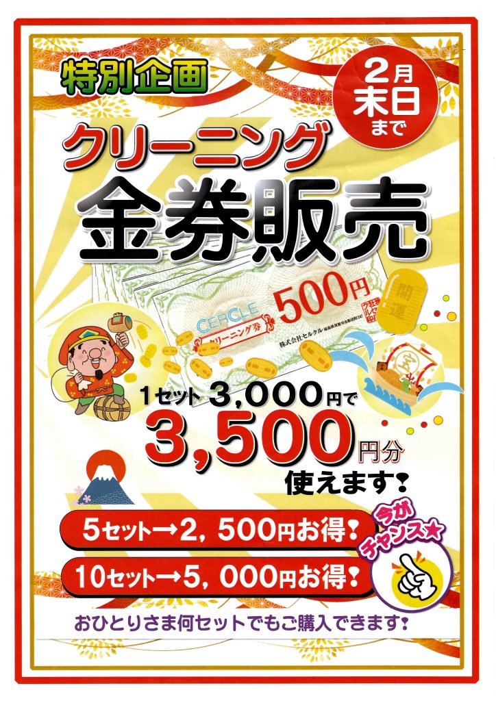 お得なクリーニング金券のご案内 ぜひご利用ください お一人様何セットでもお求めになれます
