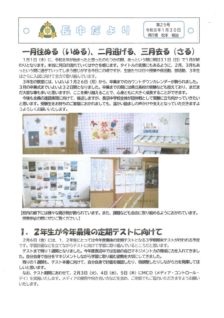 • 長中だより 1月30日号のご紹介