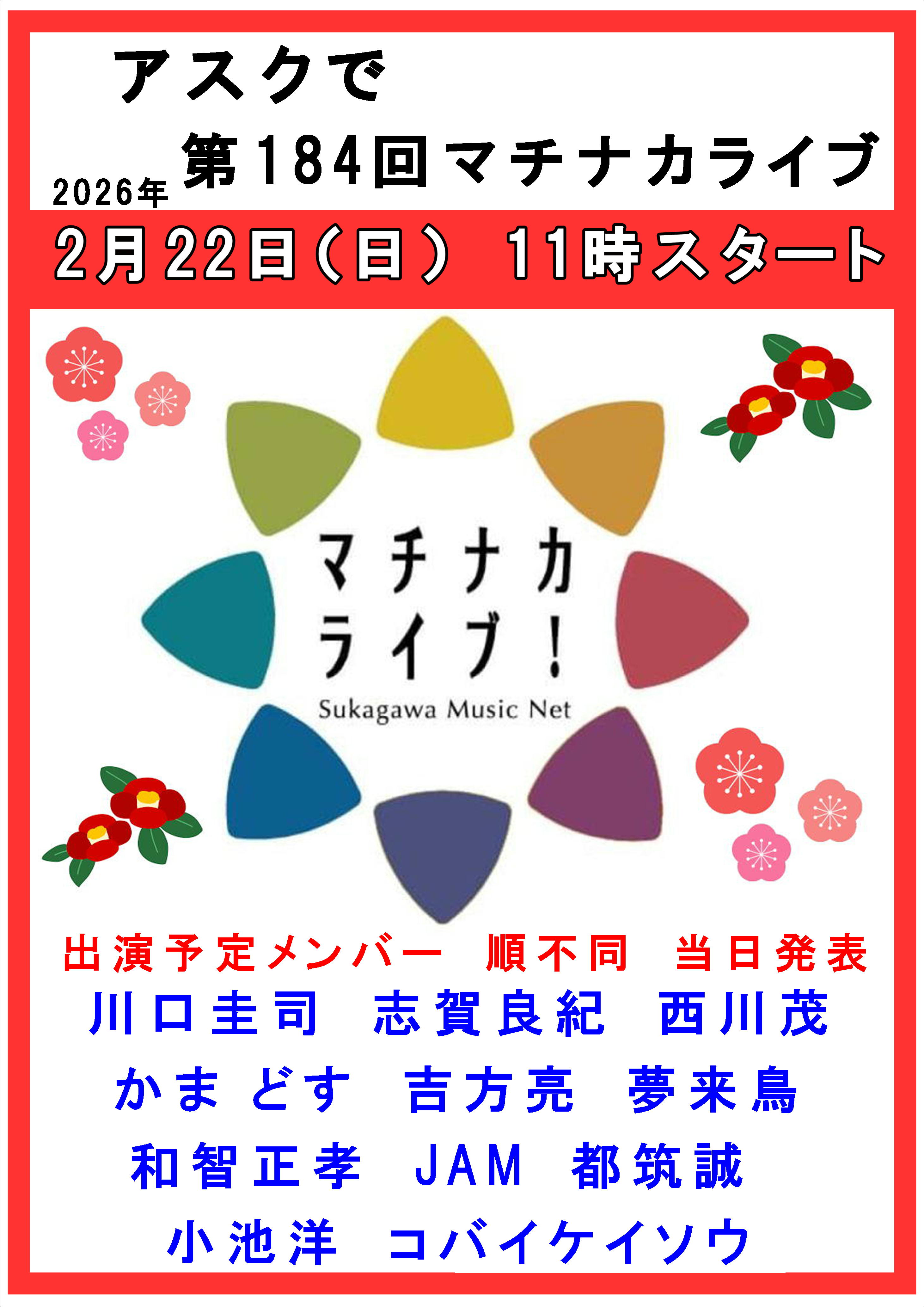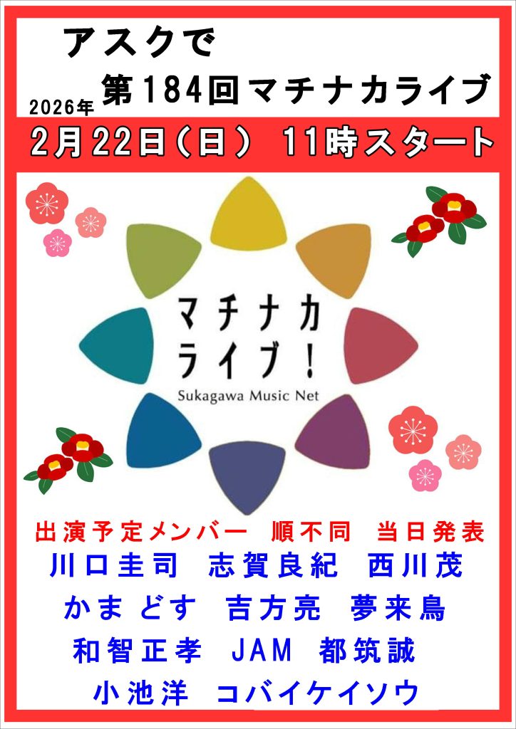 2月22日(水)アスクでマチナカライブ開催いたします