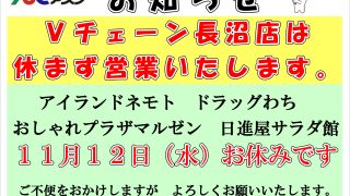 Vチェーン新長沼店は営業いたしますので ご利用ください