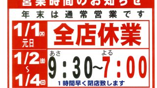 ニュース&イベント 年末年始の営業時間のお知らせ 1月2日~4日7までは閉店時間が早くなりますので よろしくお願いします