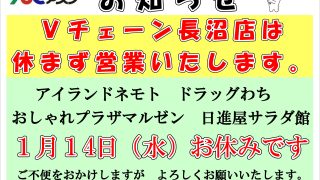 ニュース&イベント 1月14日(水) アスクテナントは定休日でございます Vチェーン新長沼店は休まず営業いたしますのでご利用お待ちしております